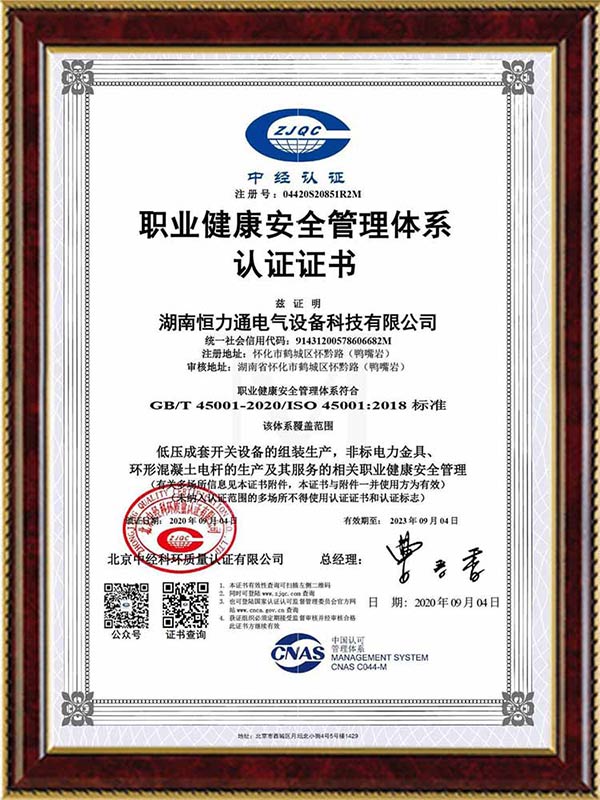 ISO45001職業(yè)健康安全管理體系認(rèn)證證書